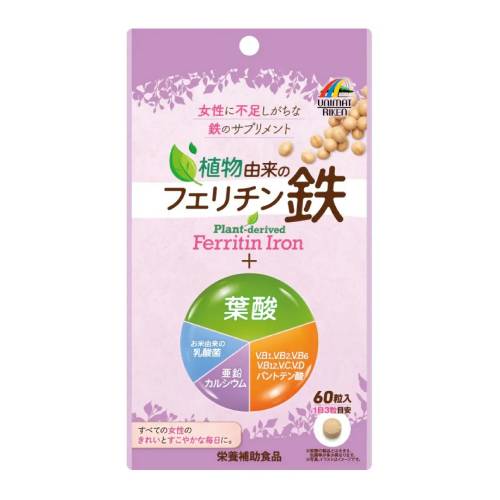 Биологически активная добавка "Феритин растительного происхождения, железо, фолиевая кислота" от Unimat Riken — это жевательные таблетки со вкусом винограда, предназначенные для мягкого восполнения дефицита железа и фолиевой кислоты в организме.