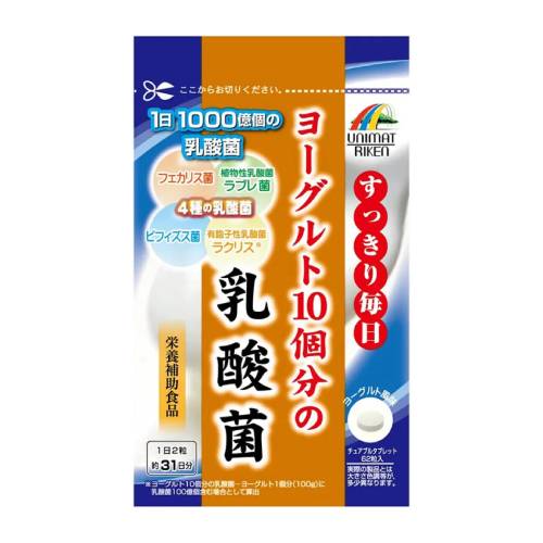 Диетическая добавка «Молочнокислые бактерии, эквивалентные 10 йогуртам» от Unimat Riken — это комплекс пробиотиков в форме жевательных таблеток, разработанный для поддержания здоровой микрофлоры кишечника и укрепления иммунитета.