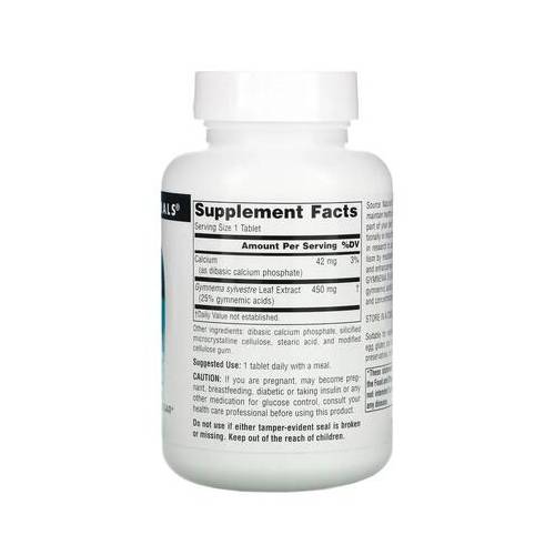Gymnema Sylvestre Source Naturals – биологически активная добавка, положительно влияющая на обменные процессы и способствует похудению. Активное вещество добавки - єкстракт листьев вечнозеленой ветвистой лианы джимнемы.