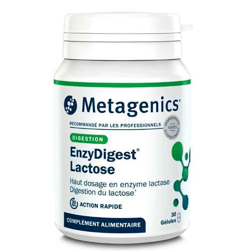 ЭнзиДайджест Лактоза от Metagenics — незаменимая добавка для людей страдающих непереносимостью лактозы. При употреблении молочных продуктов и продуктов, содержащих значительные дозы лактозы, такие пациенты страдают аллергическими реакциями, несварениями, метеоризмом и прочими неприятными симптомами. Добавка Метадженикс с высоким содержанием лактазы, около 9000 единиц FCC, на капсулу продукта, помогает убрать симптоматику и улучшить усвояемость лактозы в желудке. Лактаза имеет грибное происхождение, для ее изготовления используются грибы рода Aspergillus Oryzae. Одна капсула содержит достаточное количество фермента для расщепления молочного сахара из 400 см3 цельного молока (20 г лактозы).