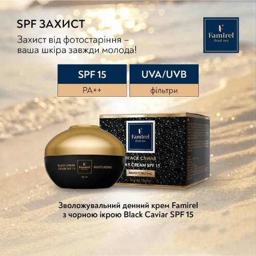 Интенсивный крем с экстрактом черной икры от Famirel стимулирует обновление клеток и укрепляет кожу, насыщен активными увлажняющими компонентами, такими как: масло авокадо, гиалуроновая кислота и минералы Мертвого моря. Формула обогащена экстрактами граната, зеленого чая и огурца, обеспечивая коже баланс высококонцентрированных масел, белков и минеральных солей.