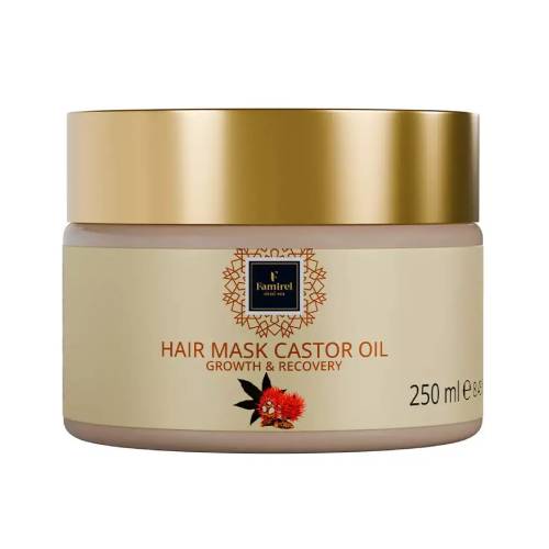 Маска с касторовым маслом от Famirel способствует активному росту волос и предотвращает выпадение. Благодаря ценным маслам и экстрактам растений состояние волос мгновенно улучшается. В составе средства масло зародышей пшеницы и витамины, которые помогают сохранять влагу в структуре волос, предотвращают ломкость и придают волосам гладкость и шелковистость. Регулярное использование этой маски сделает ваши волосы более крепкими, увлажненными и блестящими.