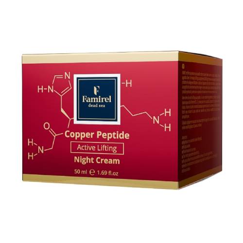 Ночной крем для лица лифтинг-актив с пептидами меди от Famirel подходит для всех типов кожи. Благодаря формуле с витаминами, экстрактами растений и другими активными компонентами крем хорошо питает и увлажняет кожу, замедляет разрушение коллагена, заметно подтягивает ее. Крем эффективен против таких признаков старения, как гиперпигментация, фотостарение и дряблость кожи, ускоряет обмен клеток и уменьшает глубину морщин.