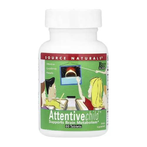 Attentive Child от Source Naturals — это специализированный комплекс для поддержки концентрации, памяти и когнитивных функций у гиперактивных детей. В составе — DMAE, магний, фосфатидилсерин, экстракты виноградных косточек и сои, поддерживающие обмен веществ в мозге.