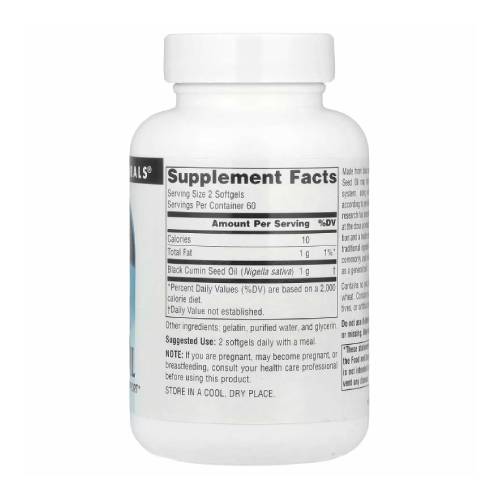 Source Naturals Black Seed Oil — это биологически активная добавка, содержащая масло семян черного тмина (Nigella sativa), традиционно используемого в аюрведической медицине для общего укрепления здоровья. Масло богато тимохиноном (TQ) — мощным антиоксидантом, который, как считается, вносит основной вклад в его полезные свойства.