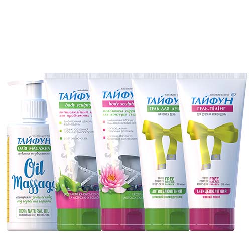 Тайфун – это инновационная серия средств для людей, которые хотят избавиться от лишнего веса, целлюлита или растяжек кожи. В своей линейке бренд Тайфун совмещает внешний уход за телом и внутреннюю поддержку организма. Используя средства серии Тайфун достигать вожделенной фигуры легко и приятно, ведь он имеет формы крема, чая, кофе, геля для душа, массажного масла и другие. Чтобы ускорить достижение цели, достаточно заменить привычные средства на продукты бренда. Так процесс построения тела становится естественной частью вашей жизни. Благодаря комплексному действию натуральных экстрактов и современных разработок, вы сможете получить фигуру вашей мечты, получая при этом удовольствие. Торговая марка Тайфун уже несколько сезонов подряд является официальным партнером проекта «Зважені та Щасливі», и используется участниками проекта, которые борются с лишним весом.