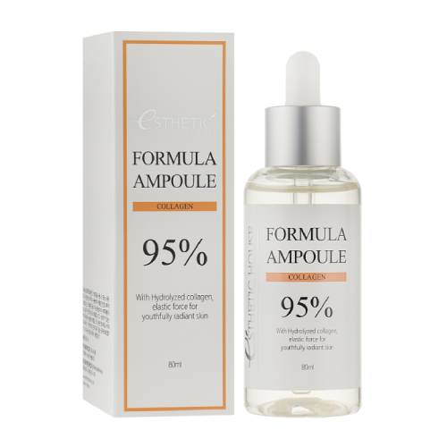 Сыворотка Esthetic House Formula Ampoule Collagen — это высококонцентрированное средство для лица с гидролизованным коллагеном (95%), которое укрепляет кожу, повышает ее эластичность и упругость. Она разглаживает морщины, а также увлажняет благодаря гиалуроновой кислоте и осветляет тон благодаря ниацинамиду (витамину B3), придавая коже здоровое сияние и молодость.