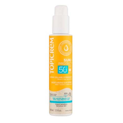Увлажняющий солнцезащитный спрей Топикрем Sun Protect обеспечивает эффективную защиту от солнца, содержит UVA/UVB фильтры широкого спектра покрытия SPF50 и PA++++, экстракт эхинацеи, глицерин, которые глубоко увлажняют кожу в течение 8 часов, успокаивают и уменьшают оксидативный стресс кожи, а также способствуют равномерному загару.