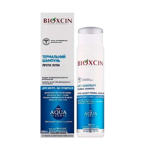 Шампунь від лупи на основі термальної води відмінно підходить для повсякденного використання. Він не пересушує шкіру голови, ефективно бореться з лупою, зміцнює і стимулює ріст волосся. У нього входять природні мінерали, що містяться в гіпотермічній воді, які активно заспокоюють і живлять шкіру голови. Шампунь також містить пробіотики, що захищають природний бар'єр шкіри, від шкідливого впливу навколишнього середовища. Регулярне використання шампуню усуне лупу, допоможе заспокоїти роздратовану шкіру і зніме нав'язливий свербіж. Рекомендується людям, що страждають на алергію або з чутливою і шкірою голови, яка здатна легко подразнюватися.