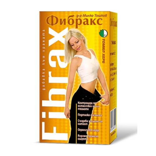 Лікар Тошков створив препарат Фібракс для допомоги організму впоратися з надмірним апетитом. Він покращує функцію щитовидної залози, знижує рівень холестерину у крові. Одна з основних дій таблеток Tomil Herb Фібракс – це вплив рослинних волокон на шлунково-кишковий тракт. Це волокна, отримані з цукрових буряків, які багаторазово набухають у шлунку. Таким чином, викликають почуття ситості, покращують процеси травлення, механічно очищають складки кишечника від нашарованих у них токсичних речовин, і адсорбують їх. Лікарські трави, що містяться в препараті, активно допомагають прискоренню розщеплення жирових депо, що покращує детоксикаційну функцію печінки.