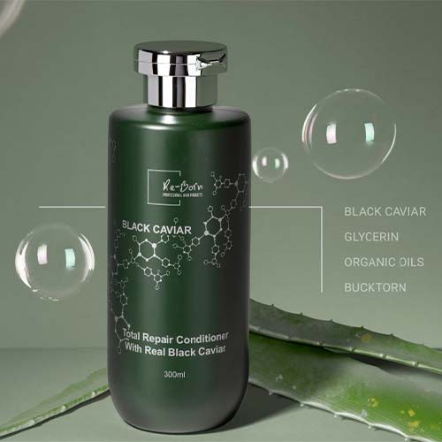 Кондиціонер Re-Born Total Repair Conditioner з чорною ікрою призначений для інтенсивного очищення, живлення та повного відновлення сухого волосся. Засіб збагачений екстрактом чорної ікри, антиоксидантами (екстракти апельсина та граната), рослинними екстрактами (горіх макадамія та аргана) та вітамінами, що зміцнюють та захищають волосся. Кондиціонер пом’якшує волосся, полегшує розчісування та ідеально підходить для використання після миття шампунем для повного відновлення.