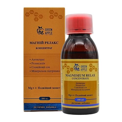 Магній Релакс - це дієтична добавка, що містить магній та рослинні екстракти, призначена для підтримки нервової та серцево-судинної систем, покращення сну та зниження м'язової напруги. Цей продукт, що постачається у вигляді концентрованого розчину, містить магній у легкозасвоюваній формі, а також рослинні екстракти (пустирник, меліса, пасифлора), що мають заспокійливу дію.