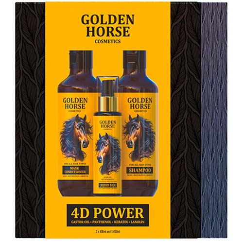 Набір для волосся Golden Horse 4D Power шампунь, маска-кондиціонер та олія – комплекс засобів з догляду за волоссям, що забезпечує ретельне очищення, зволоження та відновлення волосся.
