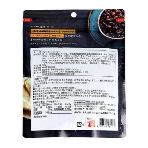 Напій виготовлений зі 100% в'єтнамської кави, з додаванням несоленого вершкового масла, кокосового молока та пахти, а також невеликої кількості кориці та глибоководних мінералів для м'якого смаку. В'єтнамська кава має інтенсивний міцний смак, з ноткою кориці, кокосовим молоком та морськими мінералами. У продукті дуже мало цукру, що робить його чудовим вибором для здорового харчування (всього 0,19 г на порцію). Розчинна форма дозволяє швидко приготувати корисний напій вдома чи офісі.