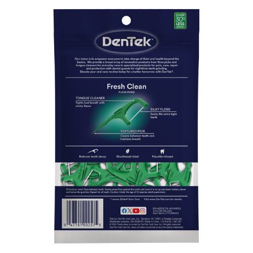 Флос-зубочистки DenTek Oral Care - зручний та корисний аксесуар для догляду за зубами. Завдяки високій якості нитки, комфортному дизайну та м'ятному аромату ці флос-зубочистки забезпечують ідеальне очищення зубів та тривалу свіжість дихання.