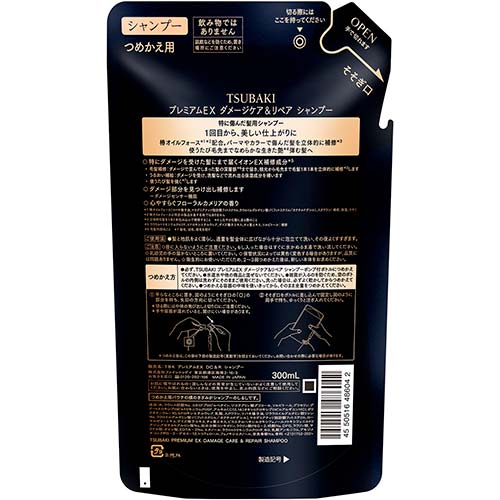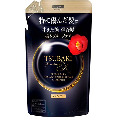 Шампунь TSUBAKI Premium EX Damage Care & Repair Shampoo – оновлений засіб для догляду за пошкодженим волоссям з олією камелії для інтенсивного лікування, відновлення та реконструювання пошкодженого волосся. Шампунь м'яко очищує волосся та шкіру голови, регулює вироблення себуму, зволожує волосся від коренів до кінчиків та сприяє його відновленню.