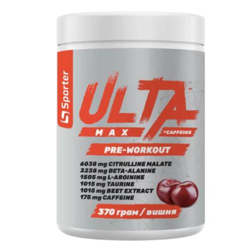 Ulta Max Pre-Workout + сaffeine від Sporter - потужний передтренувальний комплекс для спортсменів та любителів фітнесу, які прагнуть підвищити свою продуктивність, витривалість та рівень енергії під час тренувань. Містить високу дозу кофеїну, який сприяє збільшенню енергії та покращенню концентрації, допомагаючи досягти максимальної продуктивності під час тренувань.