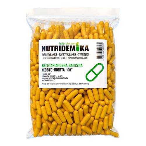 Вегетаріанська капсула розміром 00 (вага капсули 0,500 – 0,750 грамів) - 1000 шт.