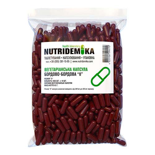 Объем содержания вегетарианских капсул размером 0 стандартен, примерно 400-800 мг в зависимости от плотности порошка.