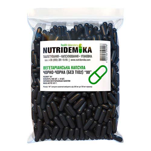 Вегетарианская капсула размером 00 (вес капсулы 0,500 – 0,750 г) – 1000 шт.