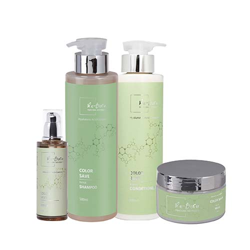 Нанесите на волосы Re-Born Color Save Repair Shampoo, затем смойте теплой водой, повторите процедуру, высушите волосы полотенцем.